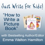I had been a regular viewer of Emma Walton Hamilton’s Blog for sometime, so when she started up “Just Write for Kids” a Home Study Course in Writing Picture Books, I was interested.  Naturally I had questions – as I was reworking a  novel , would her picture book course be of any use?  I needn’t have worried.  I can only say that while I was more a reserved student, I found it very helpful indeed.  Emma’s kind, patient, coaching, and easy to understand step by step processes in bringing a picture book to life, is a must course to take.  From themes, plots, styles, to fleshing out characters, using effective dialogues, and editing, Emma leaves no stone unturned in delivering a comprehensive workshop right into your own home.  Whether just getting your feet wet, or already a published author needing a refresher, you will find Emma touches on points that could be used across all genres of writing.  Her passion shows in her answers to questions and continued encouragement, which has helped immensely to build my confidence in the belief, that I have something to offer.  I was delighted when she went on to set up the Children’s Book Hub, which houses anything from Resources, such as conferences, organisation links, and workshops, to Newsletters, Special Guest Seminars led by Emma and Question and Answer calls with Emma herself.  There is also a forum where writers chat about all aspects of writing, sharing what they have discovered, asking for advice and picking up new and interesting ideas.  Emma is there to guide and advise as always with her vast knowledge.  It is with this new-found confidence I have started a 5Word/Sentence game within the Hub.  Think of 5 words and during the course of a week, the other members are coming up with a sentence for each word. A great strategy for writers block, finding a new idea, maybe needing help with editing your work, a sentence or paragraph is alluding you, helping to stretch that creative mind within. What better way to receive some help and have fun all at the same time. I hope you will join us.
