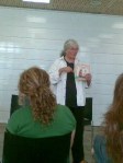 duced Pamela Allen. Award winning writer and illustrator of children’s books, New Zealand born Pamela has penned over 30 books since 1980 with the first being “Mr Archimedes Bath.” She was originally only interested in illustrating, but was approached by a publisher to write a story, while spending some time living in Australia. Along with some of the basic principals I have been taught, Pamela spoke of starting out with the tools you have, either as a writer, or illustrator, and are most comfortable with, and go from there. She used illustration, sound and voice first, the rest followed. She explained that with pictures she drew, a story formed. Adding sounds and a voice gave it character and movement. “Always ask a question, the child looks for the answer”, such as “Who Sank the Boat”. A picture book does not come alive until it is read aloud. Pamela read to us a few of her books, including “Fancy That”. Her “Mr McGee” books are rhymed, mainly for younger children. When asked if she ever had writers block and stuck for ideas, she replied, sometimes, but her stories could arise from a small child showing her a mosquito bite ,(Mr McGee and the Biting Flea), to reading news clippings out of the paper. Her words of wisdom – always know who you are writing for, know the age, be there in that moment…. (sound advice I thought). Pamela also brought with her, for us to see, and pass around many of her drawings, which was a real treat to view, first hand. Like many there I felt honoured to have been in renowned company.