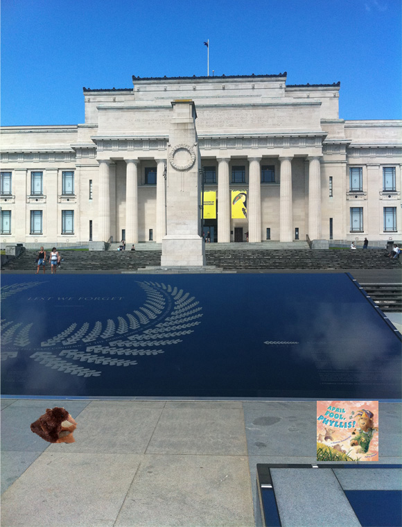 We drove into the city to the Auckland Museum, its HUGE and there are some awesome stuff in there.  But first I met a very sweet, shy, fury friend who had been waiting ever so patiently for me to arrive…. “Tamie” the Kiwi.   We hit it off right away, soon chatting nineteen to the dozen. We ran riot in the gift shop…. until we got caught!