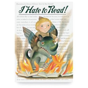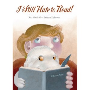 Why I like it: Imagine the characters in a book your reading suddenly coming to life, jumping out of the page tapping on your window, or grabbing you by the hand asking you to fly through the night with them. Isn’t that what we wish for most as a writer to have your reader seeing your characters coming to life? Transporting your young reader into a world of mystery, adventure and fun. In I Hate to Read young Victor is not a bad student, he does get A’s in math and B’s in science but he just hates reading, he is a victim of the I Hate to Read syndrome. While this story reminds me very much of the “Wild Things” Rita has written a beautiful story sprinkled liberally with clever wordplay and touches of humour. Etienne’s soft clear playful illustrations work well in this oversized hardbook. I smiled when I first read the dedication “to our publisher, Tom Peterson, who hates to read.”