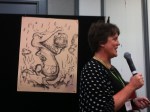 To finish off the Day of interesting speakers at the Sydney SCBWI Conference Susanne Gervay sprung into action providing heaps of laughter with an illustrator duel and charity auction for Room to Read between Sarah Davis and James Foley. It was hilarious fun. Where on earth does Susanne get her energy from?