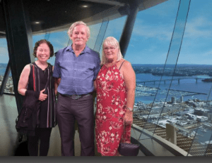 As we still had a few days left, before Vivian flew out, and a 12×12 member Kathy Derrick reached out asking if we would visit her, so hubby and I took Vivian on another road trip.  This time up north to the Bay of Islands.  We stopped first at Whangarei where they have a delightful book store called Storytimes. Had lunch in this riverside port and continued up to Paihia stopping briefly at Kawakawa where the famous toilets made of ceramic were designed by Austrian artist Friedensreich Hundertwasser.   At Paihia we visited Waitangi and Vivian walked the grounds where back in 1840 the Treaty of Waitangi was signed between 500 Maori chiefs and the representatives of the English Crown. Our accommodation was in Kerikeri.  We spent the next day catching a ferry at Paihia  for Russell where we wandered around and had lunch.  Returned to Paihia and that evening met up with Kathy and her husband.  After a lovely evening and an overnight stay in Kerikeri we returned to Auckland via Dargaville township on the west coast.  Here are some fun videos and pictures, also included is Vivian’s last night here in Auckland having an evening out at the Sky Tower in downtown Auckland to celebrate our 41st wedding anniversary.  We had such fun.  Enjoy…